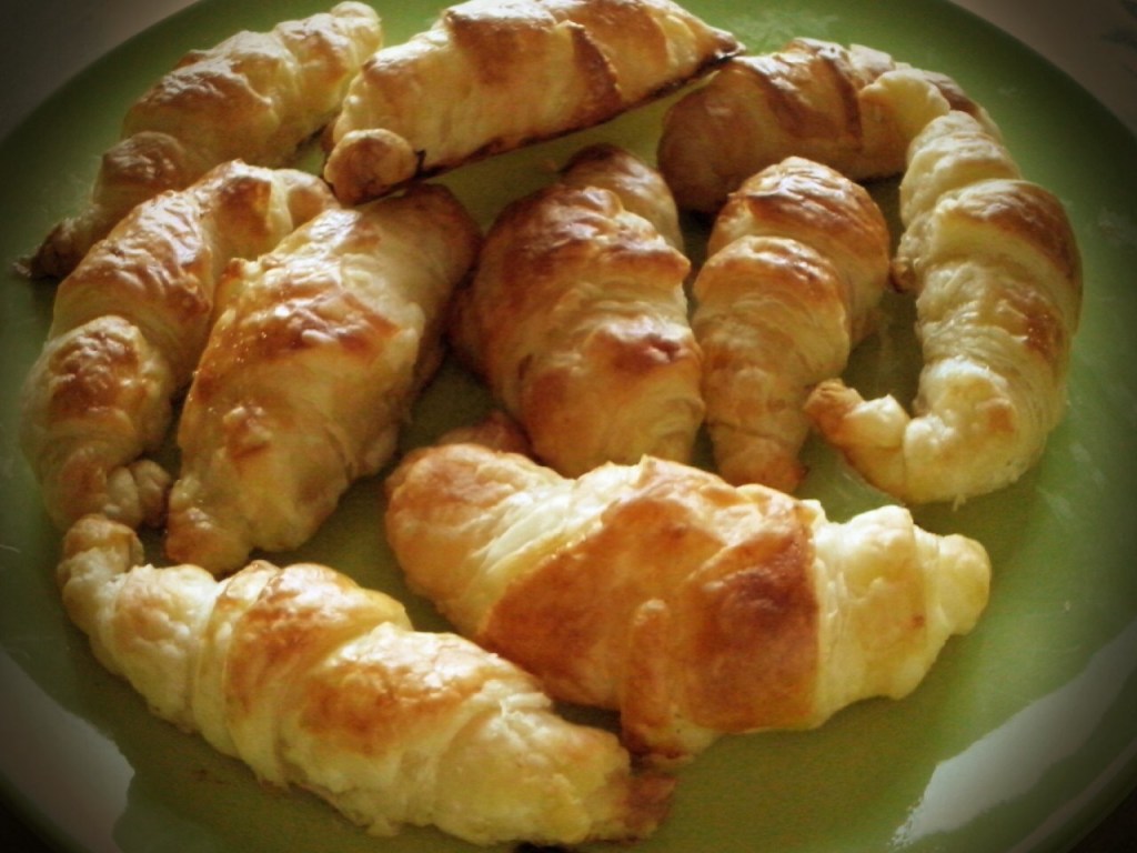 Note: don’t be too generous with the creams otherwise will be difficult to close the croissants. With one roll of puff pastry rectangle you should be able to make at least 12-13 croissant. It depends of how much large is the triangles. In my pictures I used a single roll, but there are only 10, someone could not resist!