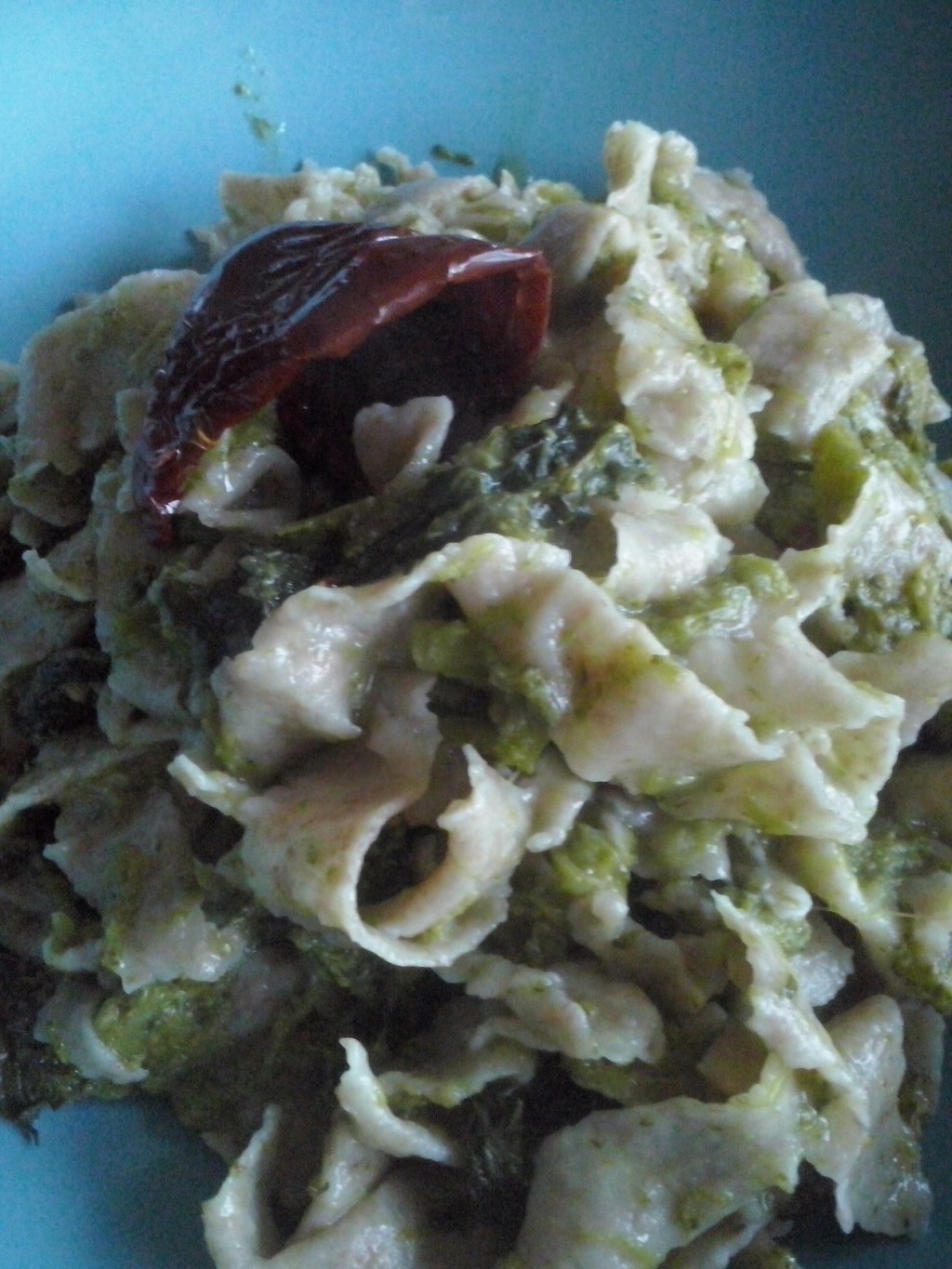 Per il condimento: pulite e lavate 1 kg di cime di rapa fresche e fate bollire in acqua salata per almeno 20 minuti. Scolatele e fatele insaporire in un tegame con aglio, peperoncino olio evo e acqua di cottura per altri 20 minuti in modo che la verdura e i fiori di vegetazione diventino quasi cremosi. Aggiungete la pasta e servite con dei pomodori secchi e ricotta salata se li gradite.