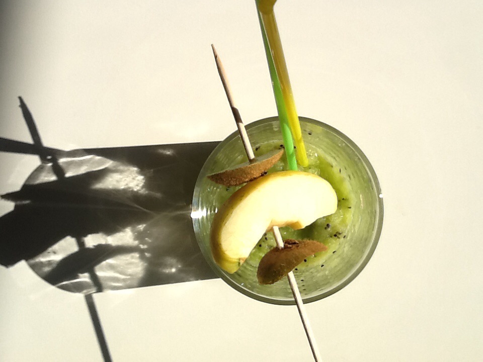 Did you know that the acidity of the kiwi slows down the darkening of apple and banana although cut and crushed by a bit?