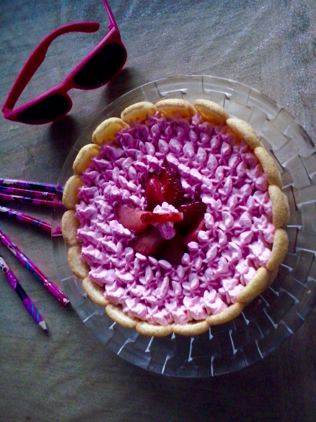 Non sò voi ma lo scorso anno al sole mi ci ero proprio abituata. Quest’inverno sembra infinito e il “grigiume” Milanese mi sta già stretto. Il mio desiderio di primavera, d’estate e di giornate più miti e soleggiate fa fatica a rimanere celato. Così mi sono lasciata convincere dal primo vassoio di fragole esposto nel banco dei freschi. E mi sono data alla cromoterapia rosa! Non ne ho fatto una macedonia, ma una buonissima mousse per la mia torta charlotte. Un’idea fresca per lasciarsi le creme tipiche invernali alle spalle. Ecco come l’ho preparata.