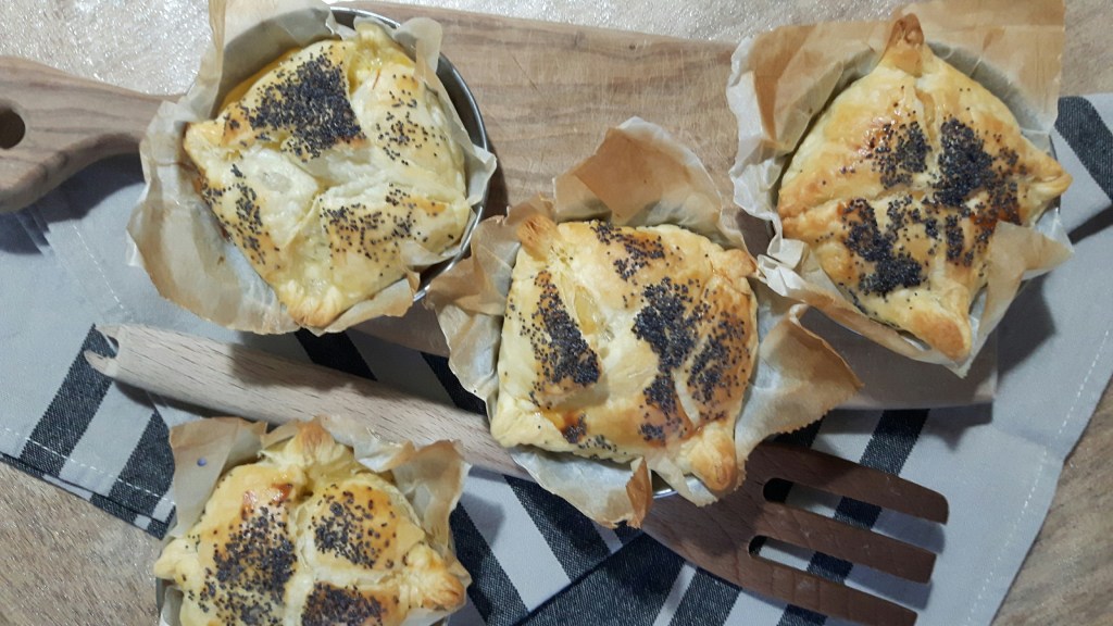 Mettersi all’opera con la pasta sfoglia è una di quelle cose che mi soddisfa perché puoi farla come vuoi ed è sempre buona. Le mono porzioni io le preferisco. Sono davvero carine da presentare e la farcitura è ben proporzionata alla pasta. Con un morso arrivi subito al cuore del condimento e poi è tutto tuo!